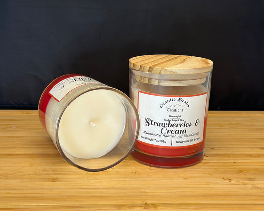 Strawberries and Cream Candle - 7oz Wood Top Candle
